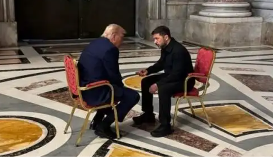 当地时间4月26日,前往梵蒂冈城参加教皇方济各葬礼的特朗普和泽连斯基,进行了一场一对一会面。